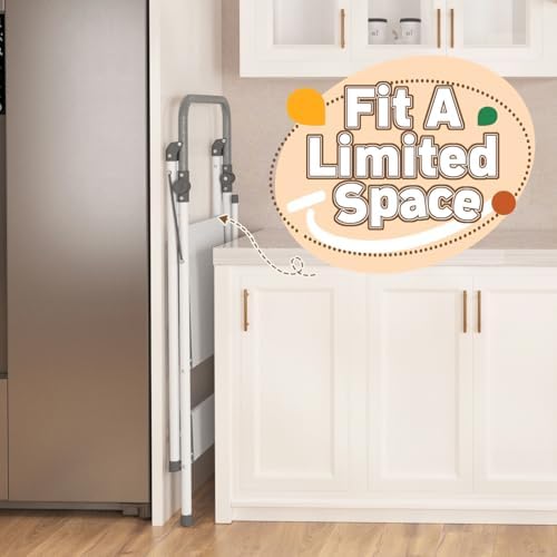 Let children observe and participate more: This kids' tower can help them reach the countertop to watch their parents prepare meals or bake; It can also help them reach the sink so that they can wash their hands and brush their teeth by themselves, fostering independence and bringing children and parents closer together No assembly required: Unlike bulky wooden toddler stools, this metal helper stool is ready to use right out of the box, without the annoying installation; 9.5 lbs weight and 330 lbs load-bearing capacity make it easier and safer to use Collapses easily for storage: For families without lots of space, this foldable kitchen stand tower would be a better choice; Fold wide is 3 1/4 inches. It can be easily stored in narrow spaces such as between furniture, storage rooms, etc The design ensures safer usage: Our child tower is fitted with a wide anti-slip platform measuring 14.75 x 14.0 inches, providing security and reducing the risk of tipping over; The product's edges are rounded to minimize the possibility of injury; Additionally, the limit bar prevents kids moved back too far to falling backward Long-term use for all seasons: This children's standing stool is not a short-term deal; After lowering the limit rod, it can be used as a small stool. Parents can also use it to reach the high closet in the kitchen or high cabinet; It is like a family member accompanying the child as he grows up